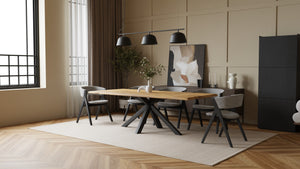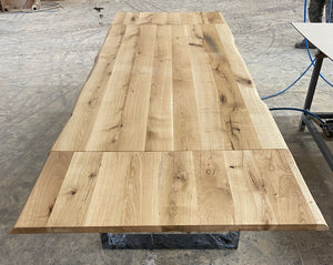 Esstisch mit Ansteckplatten, 160 (240) x90cm, Eiche massiv Baumkante und Spidergestell