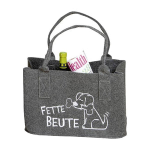 Beschreibung: Filz-Tasche Smart Shopping dunkelgrau bestickt mit Tiermotif und Spruch: