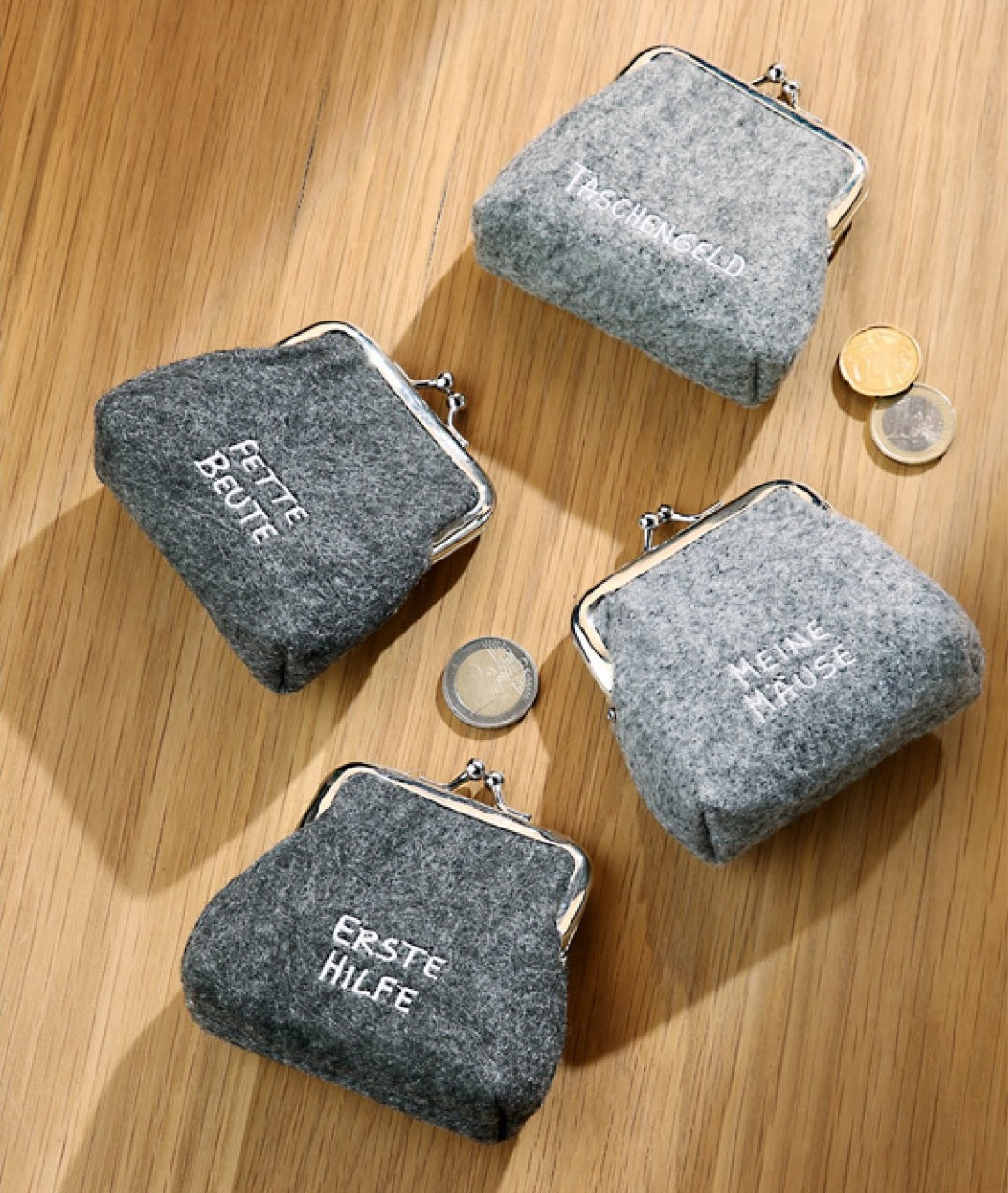 Schenken macht Spaß. Mit Geschenkartikel und Wohnaccessoires von Gilde verschenken Sie Freude. Immer auf der Suche nach neuen Trends erweitert das Gilde Handwerk sein Sortiment. Tolle Accessoires für jeden Einrichtungsstil. Klassisch, elegant, modern und individuell. Die Firma Gilde hat sich auf Entwicklung und Vertrieb von Geschenkartikeln und wunderschöner, exklusiver Wohnaccessoires spezialisiert. Zaubern Sie ein Lächeln in das Gesicht des Beschenkten oder beschenken Sie sich selber und verzaubern Ihr Zuhause. Die Gilde Geldbeutel mit Klipp mit nettem Spruch-Aufdruck sind aus Filz gefertigt. Sie sind in den Farben Hellgrau und Dunkelgrau erhältlich. Schnell eingesteckt und perfekt für die Damentasche. Sie eignet sich auch bestens als Klipptasche zur Aufbewahrung kleiner, persönlicher Dinge. Für Krimskrams, dies und das oder Kosmetik. Produkte aus Filz liegen voll im Trend. Stylisch und topaktuell.
