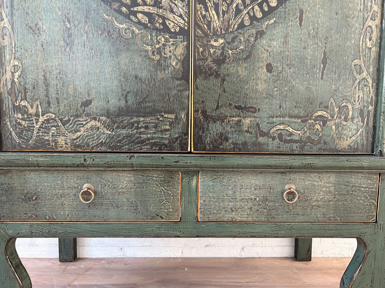 Vintage Asia Chinesischer Schrank Hochzeitsschrank Kommode Tannengrün - Art. A600-2
