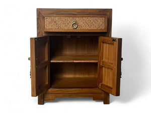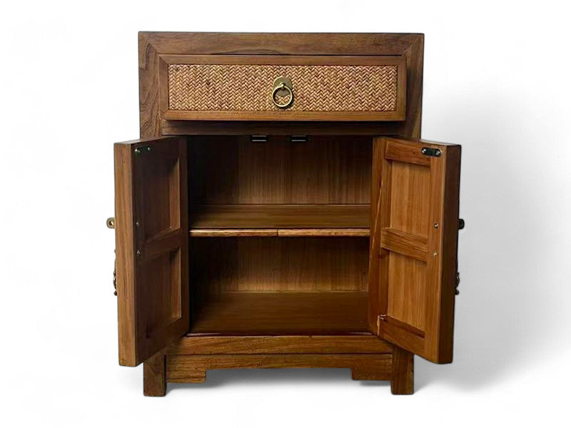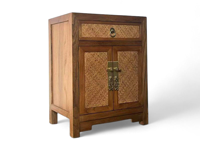 Hübscher chinesischer Nachttisch in warmem, natürlichen Braun. Die dezente fernöstliche Optik verleiht dem Stück das gewisse asiatische Ambiente, das wir versuchen allen unseren Möbeln einzuhauchen. Es besteht aus einer Schublade und einem Stauraum darunter. Diesen können Sie durch einen herausnehmbaren Einlegeboden nochmals unterteilen.