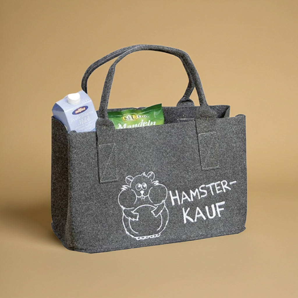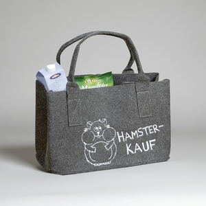 - Witzige Sprüche zur Auswahl: 'Packesel', 'Hamsterkauf' oder 'Fette Beute' – für jeden Geschmack das Richtige