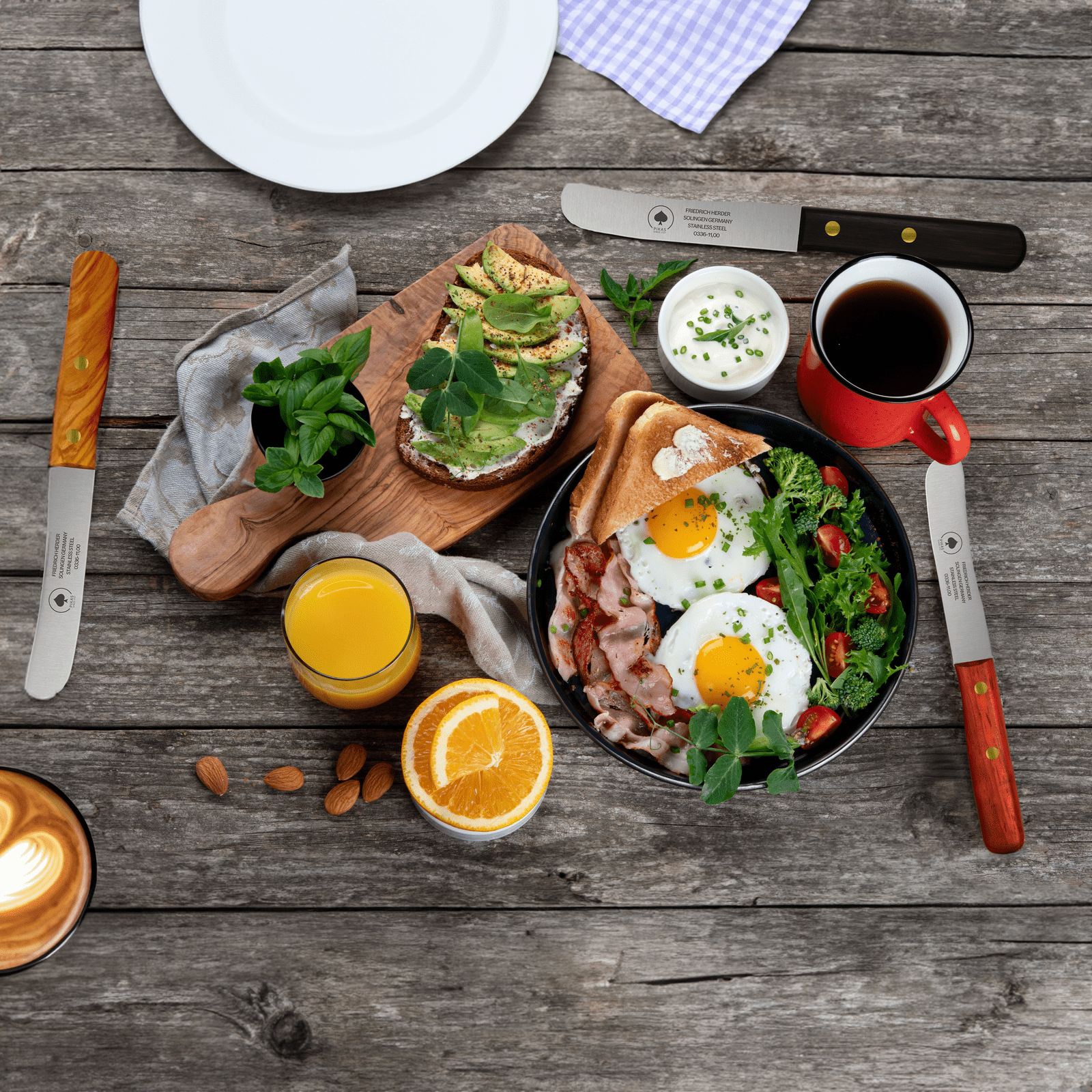 Das beliebte Frühstücksmesser - in Deutschland traditionell sehr geschätzt. Unsere PIKAS Buckelsmesser werden größtenteils in aufwendiger Handarbeit gefertigt - in einer Symbiose aus traditioneller und modernen Schleiftechniken. Heute zeichnen sich die Messer durch anhaltende Schärfe & Schnitthaltigkeit aus. Griff und Klinge werden exklusiv in unserer Solinger Produktion gefertigt, für höchste Qualität und Präzision. Du hast die Wahl zwischen zwei Varianten:
