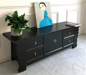Vintage Asia Asiatisches Lowboard Kommode Bank Schwarz - Art. 35208-2