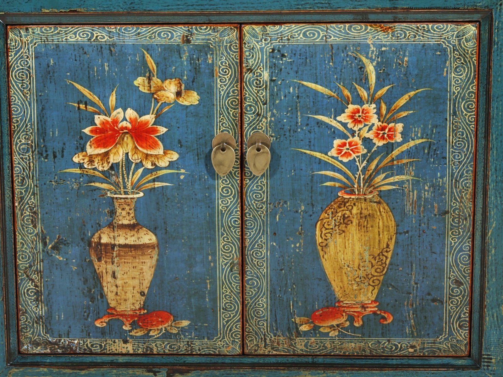 Vintage Asia Orientalische Kommode Sideboard Schrank Blau-Orange - Art. 34372-1