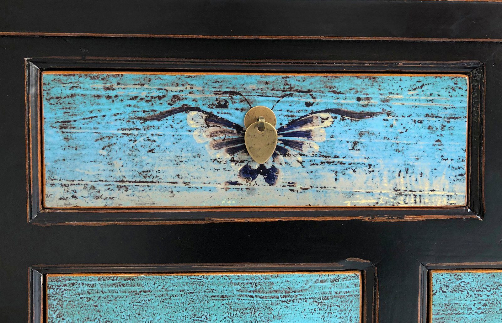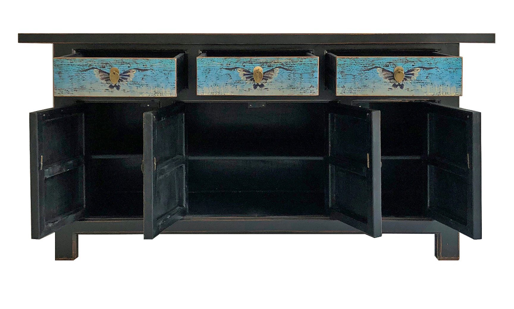 Vintage Asia Orientalische Kommode Sideboard Schrank Türkisblau - Art. 34372-5